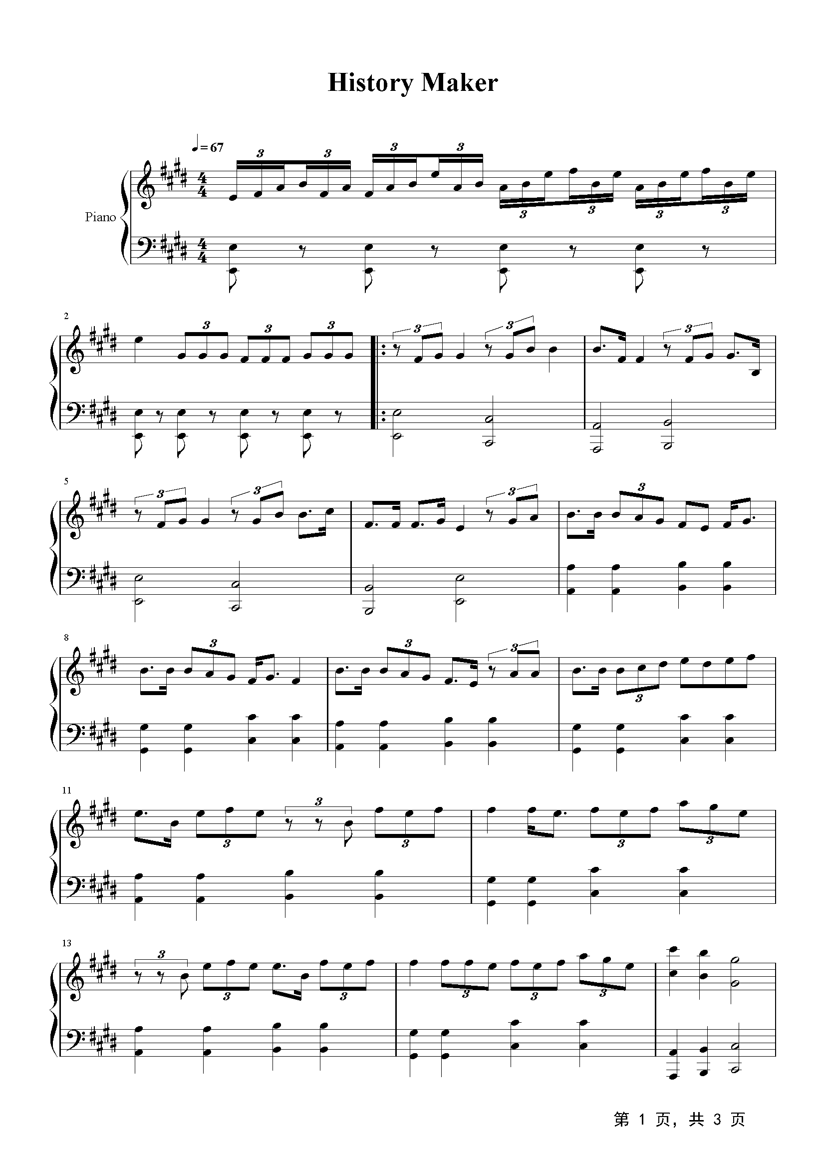 History Maker钢琴谱-藤冈靛-E调-流行钢琴五线谱