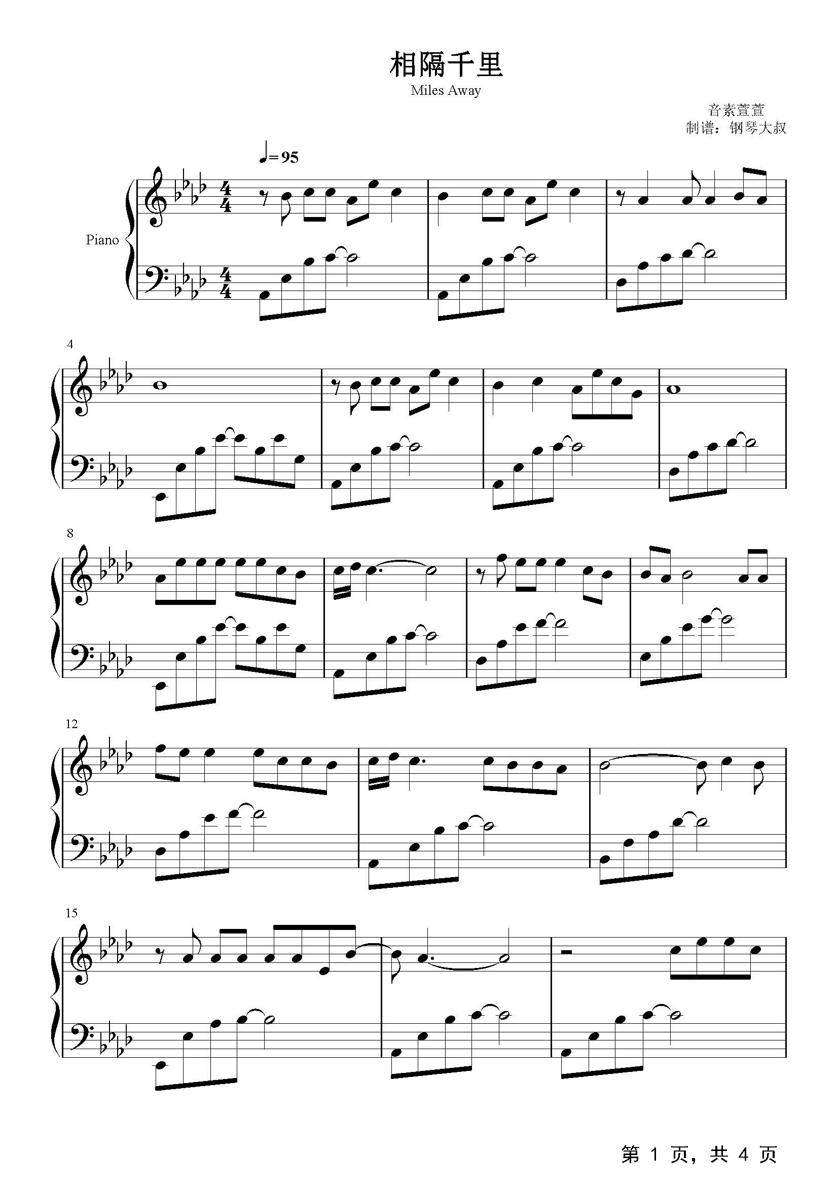 作品分类:流行钢琴五线谱