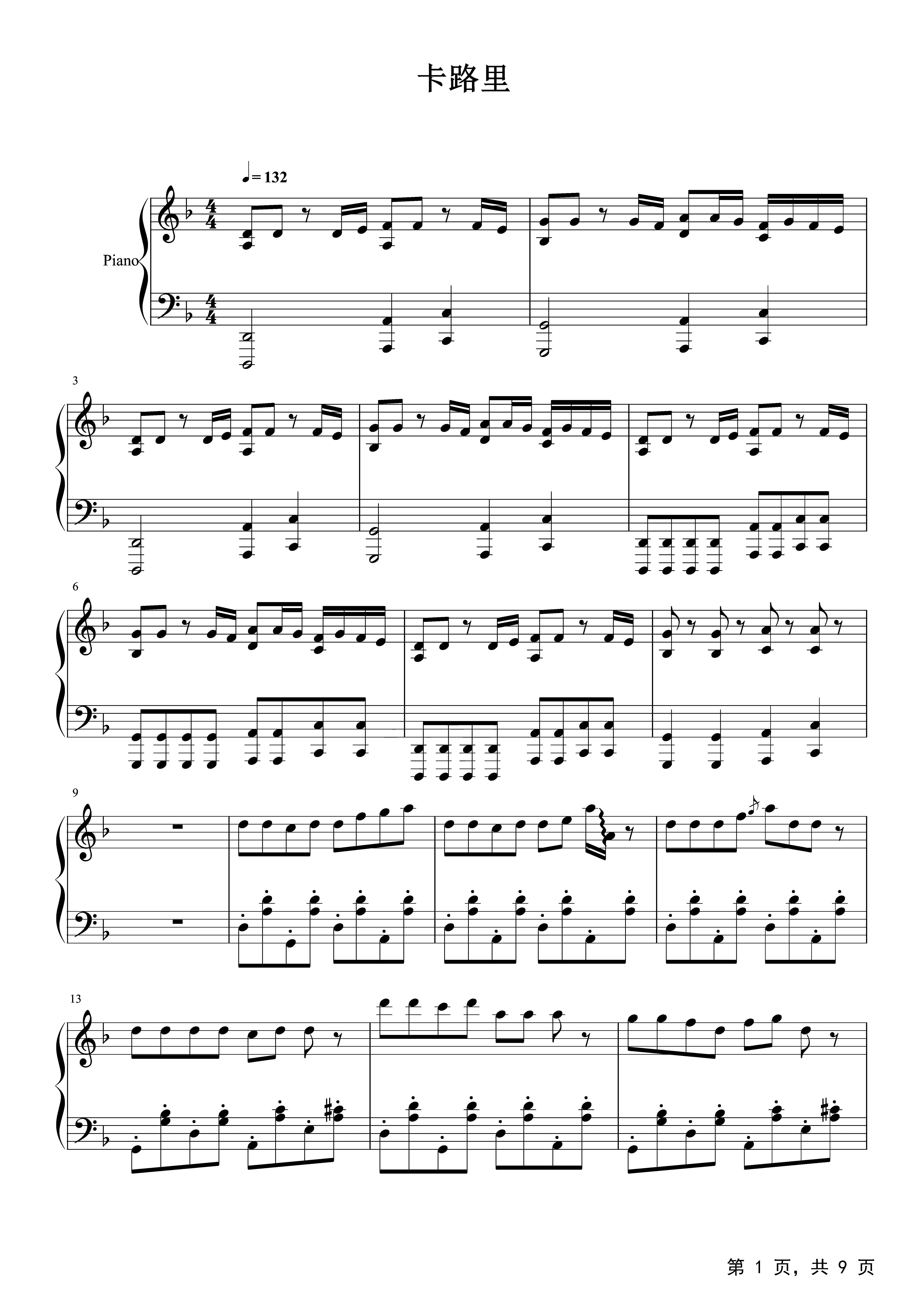 作品分类:流行钢琴五线谱