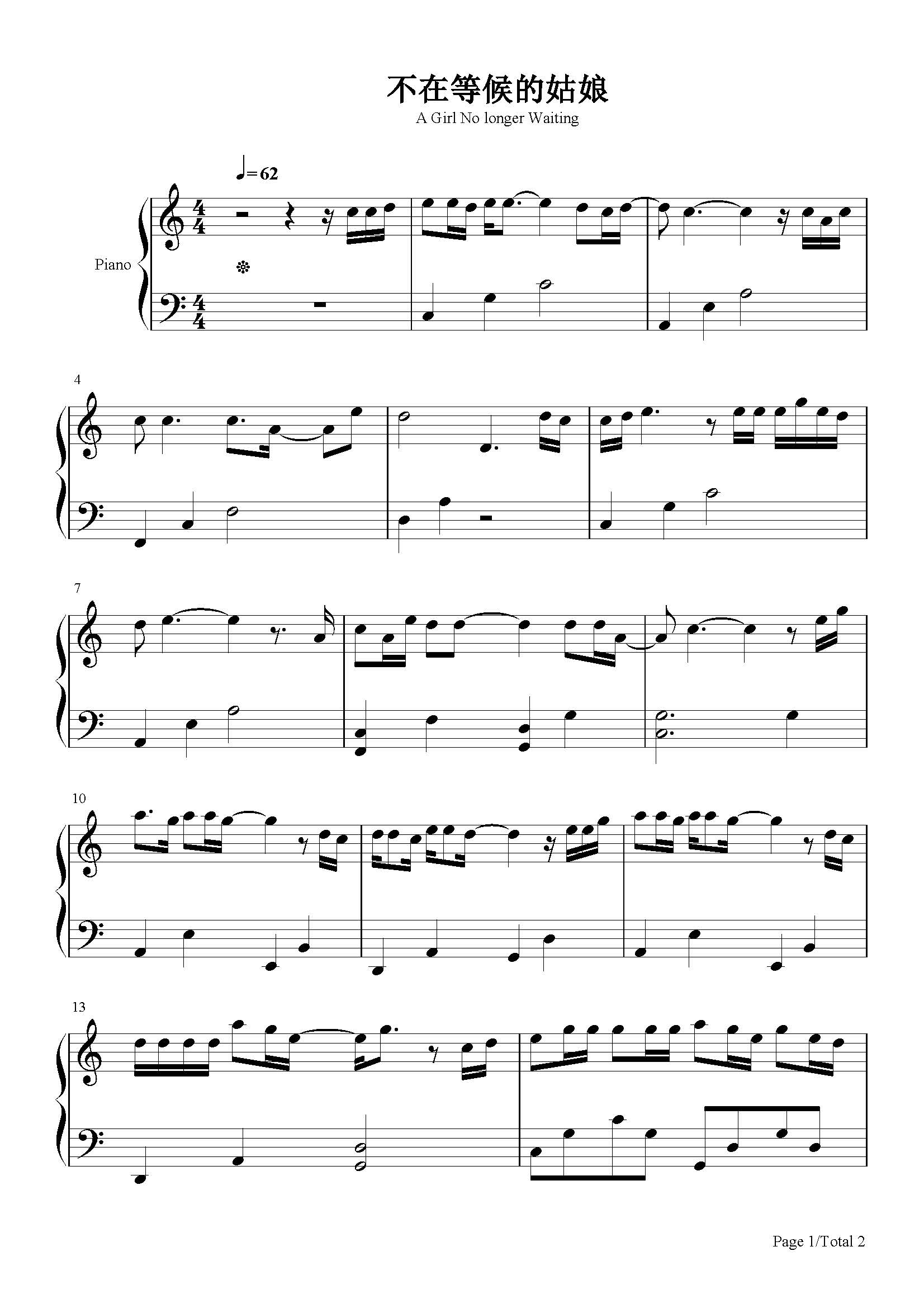 作品分类:流行钢琴五线谱