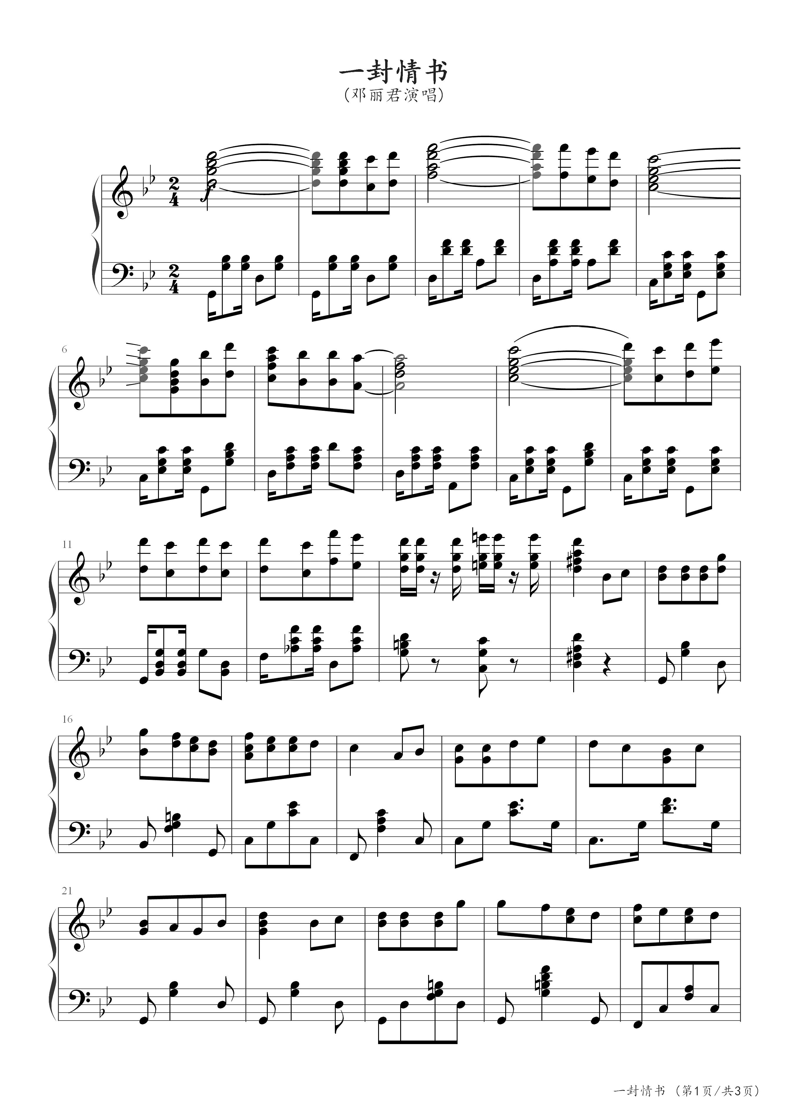 作品分类:流行钢琴五线谱