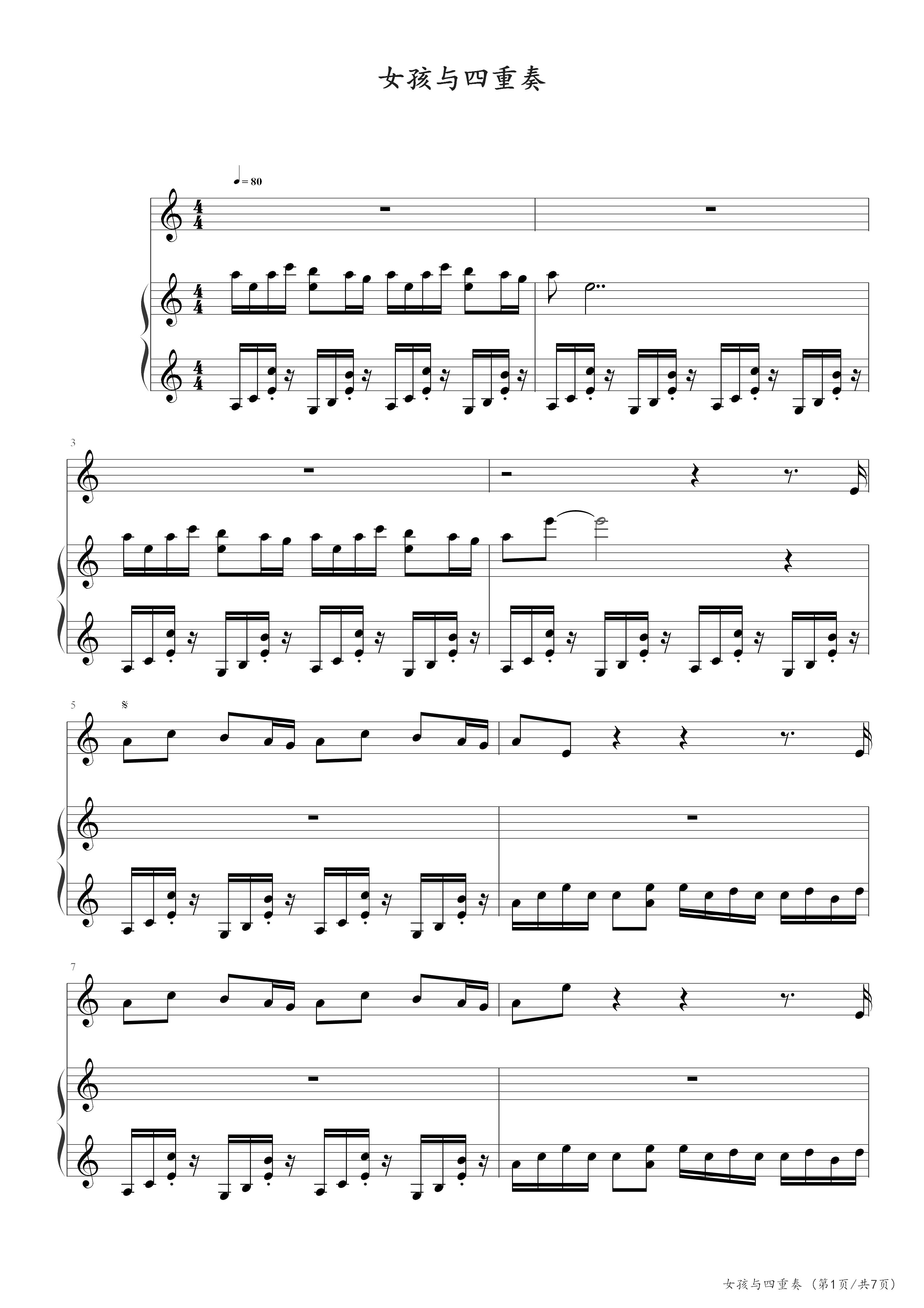 偶然钢琴五线谱