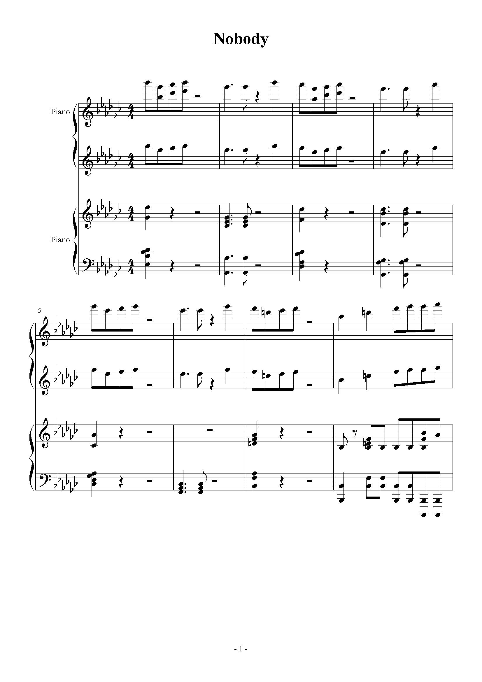 《Nobody》是韩国女子组合Wonder Girls的第三张单曲辑《The Wonder Years-Trilogy》的主打歌,发行于2008年9月22日,由JYP Entertainment的朴振荣担任制作,沿袭了60年代曾风靡一时的女子歌唱团体Supremes与The Ronettes的风格,旋律明快简洁,歌词朗朗上口、让人过耳不忘。同时,还发行了中文、日文、英语版本。2008年11月15日,凭借这首歌曲Wonder Girls获得2008年第十届MKMF最佳女子组合奖、最佳MV奖、年度歌曲奖、大赏 ;12月10日,获得2008年金唱片大赏音源专辑奖 ;2009年2月12日,获得第18届首尔歌谣大赏本赏、大赏、数码音源奖。