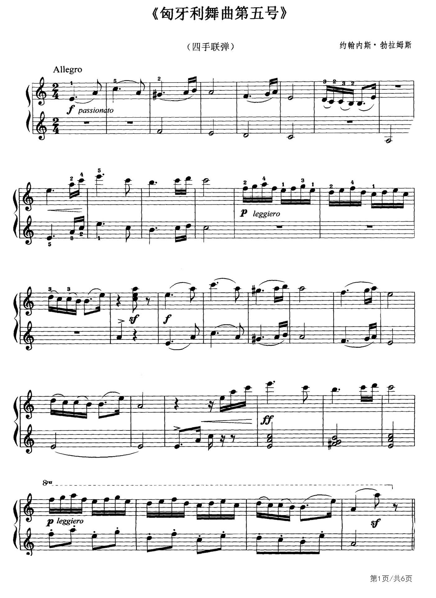 作品分类:四手联弹