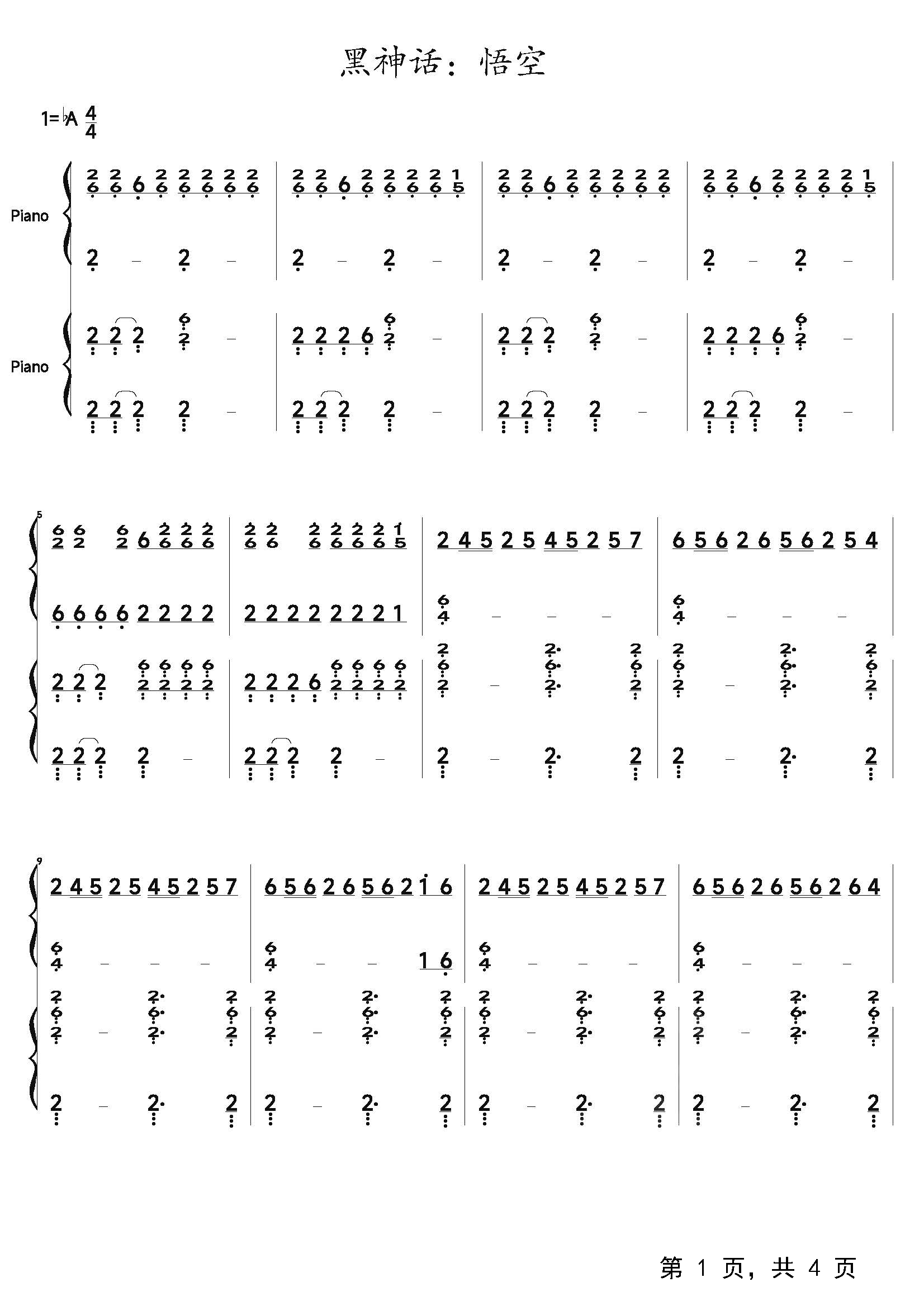 作品归属:黑神话:悟空钢琴谱