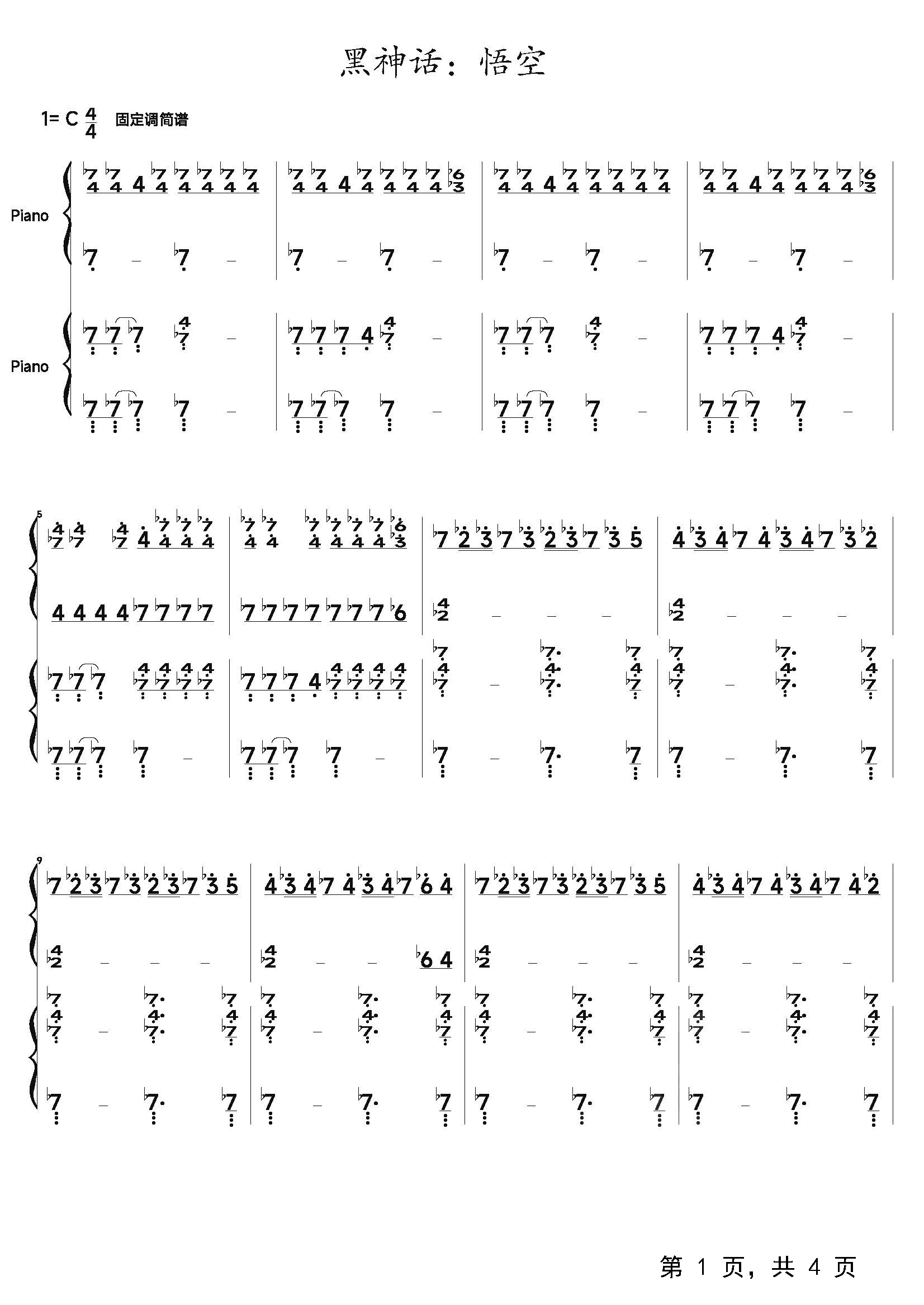 作品归属:黑神话:悟空钢琴谱