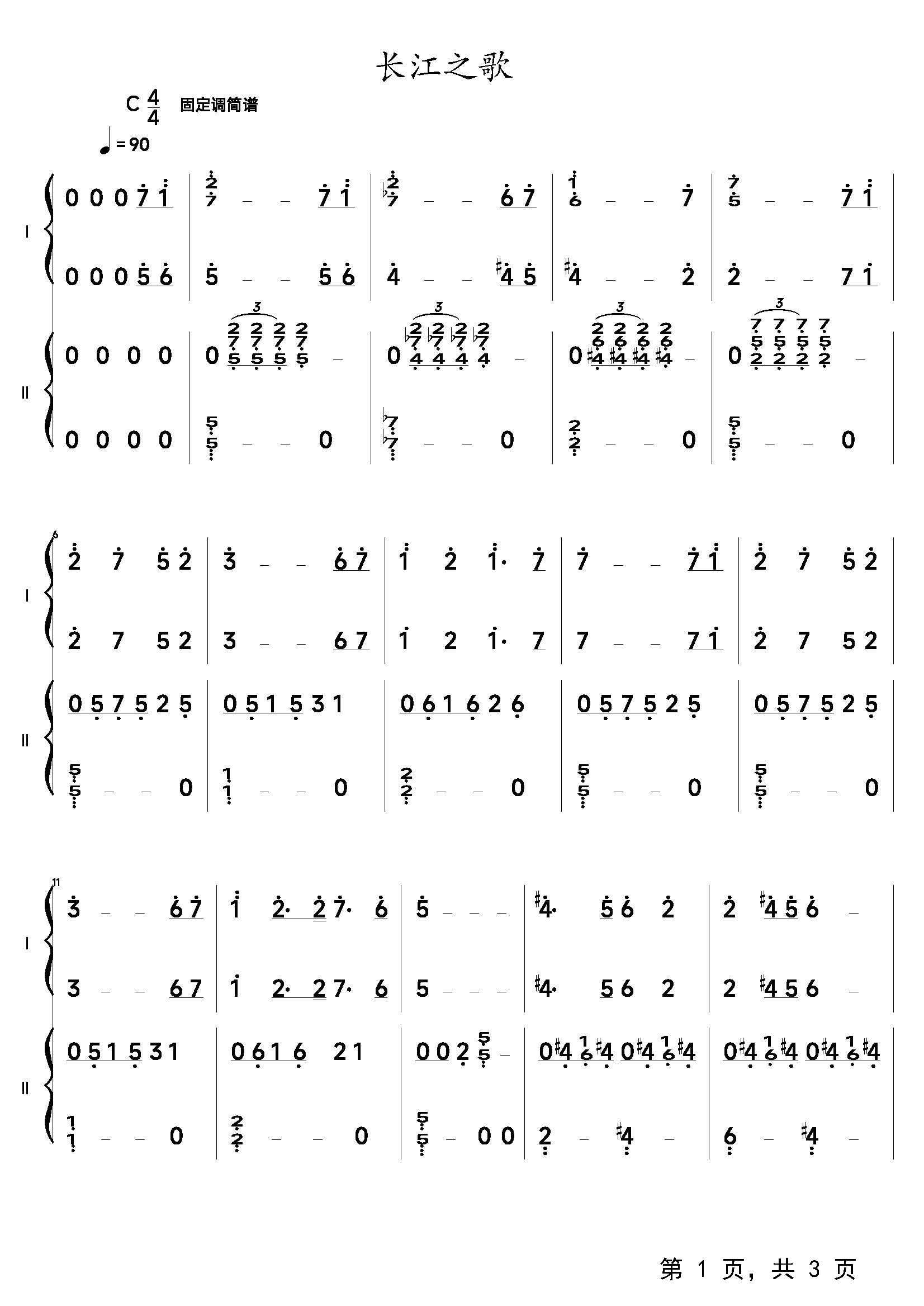 长江之歌钢琴谱-殷秀梅-C调-四手联弹