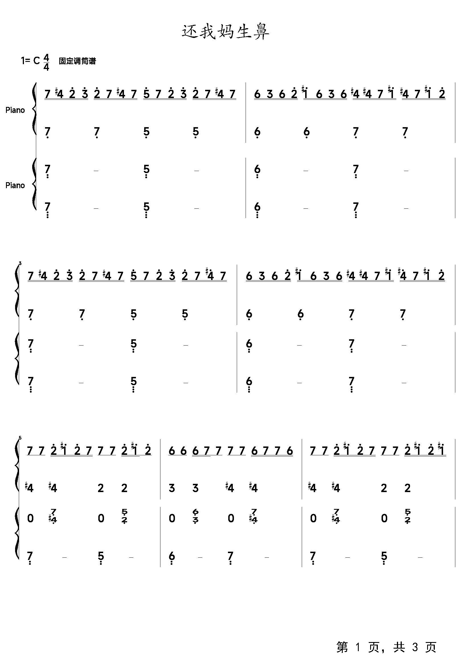 作品曲调:C调
