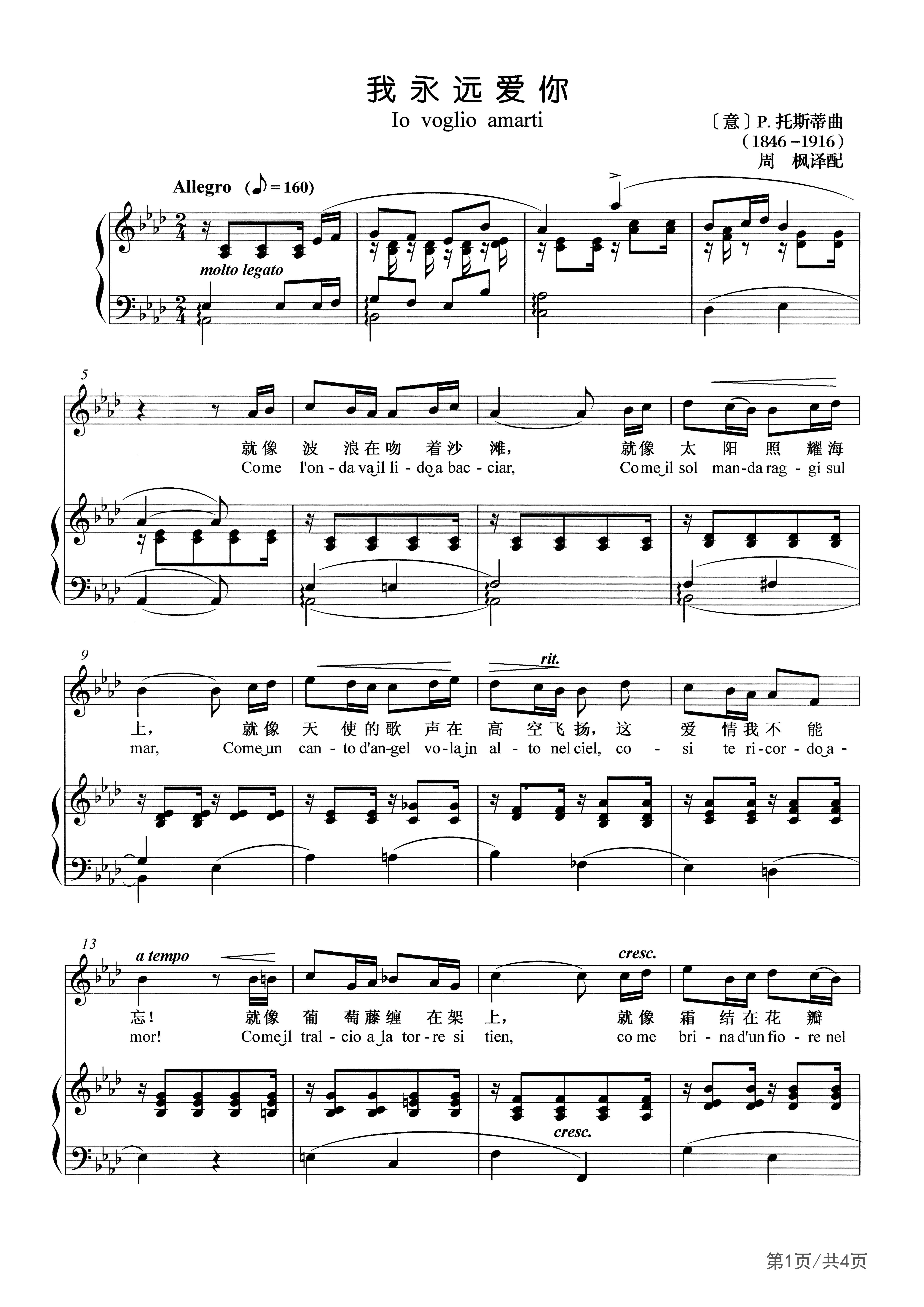 我永远爱你钢琴谱-声乐正谱-A调-外国声乐正谱