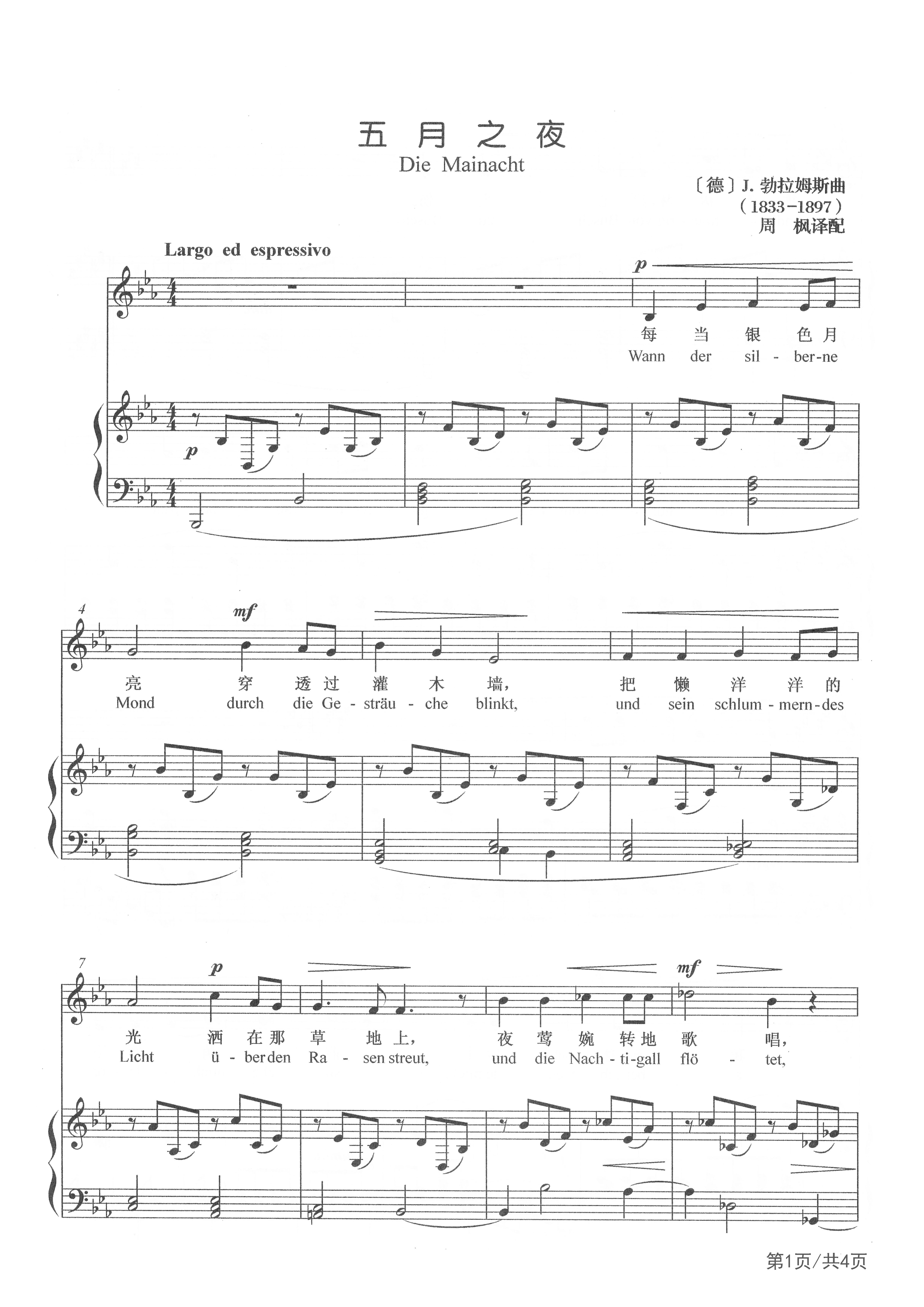 五月之夜钢琴谱-声乐正谱-E调-外国声乐正谱