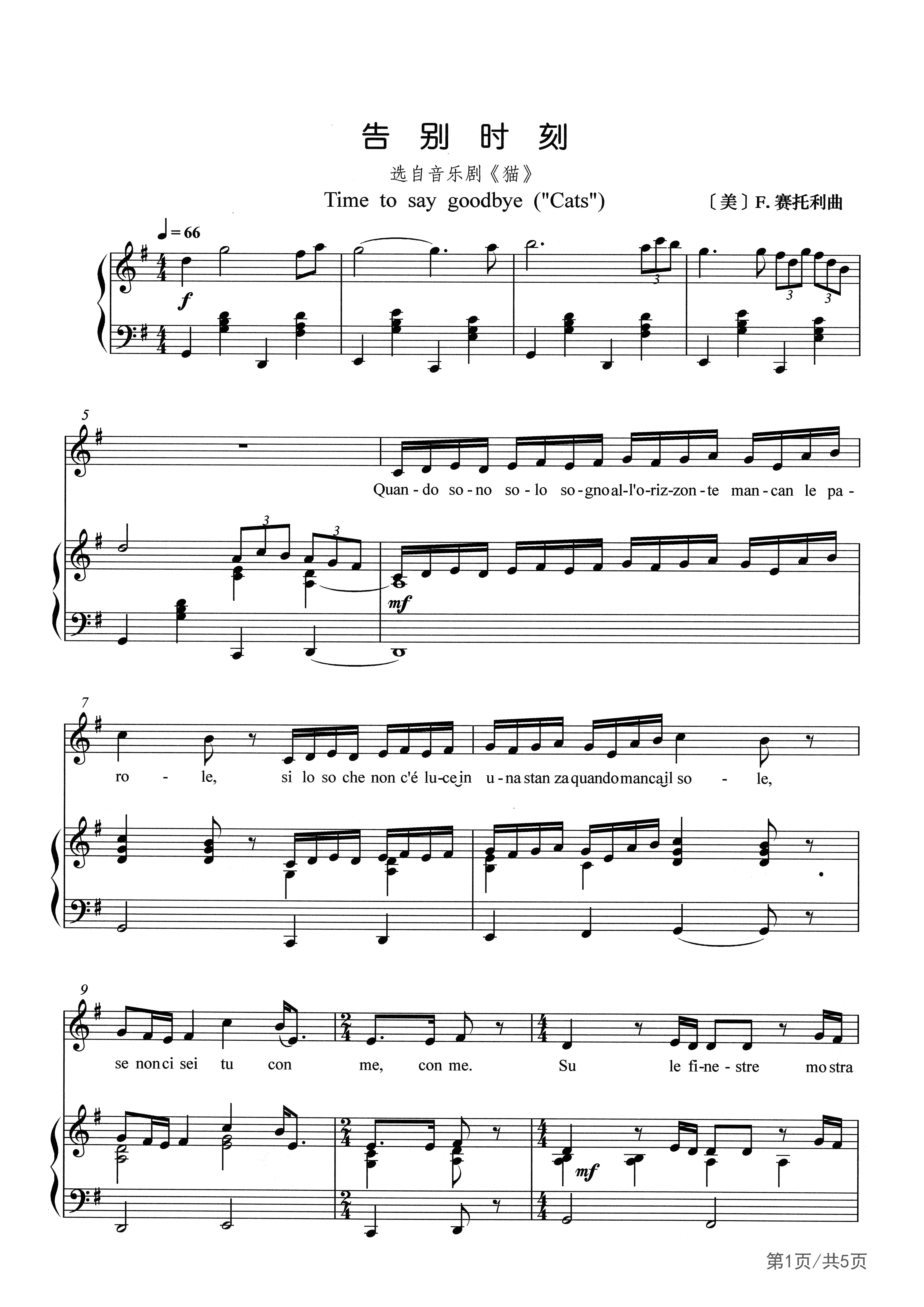 Time to Say Goodbye(告别时刻)(意大利语:Con te partiro)是一首意大利歌剧流行音乐,由弗朗西斯科·萨托利(Francesco Sartori)作曲、卢西奥·库兰特图(Lucio Quarantotto)作词。该首单曲最初是由安德烈·波伽利在1995年的意大利圣雷莫音乐会演唱的,并于同年收录在他的《Bocelli》专辑中,并认为是安德烈·波伽利的代表歌曲。该歌曲的英语+意大利语版本,是在第二次创作后,与女高音歌唱家莎拉·布莱曼合唱的版本得到了成功性的广泛传播。