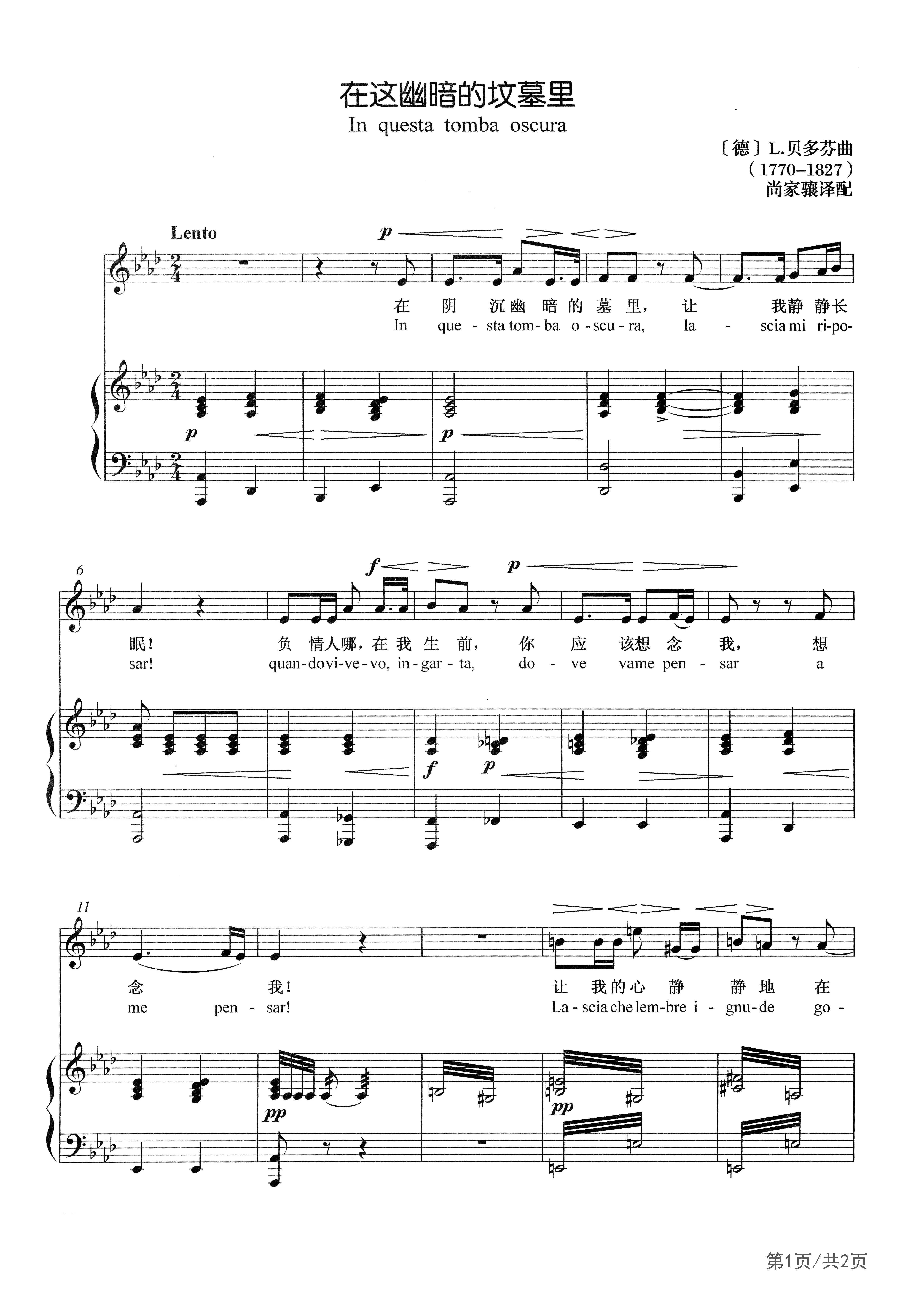 在这幽暗的坟墓里钢琴谱-声乐正谱-A调-外国声乐正谱