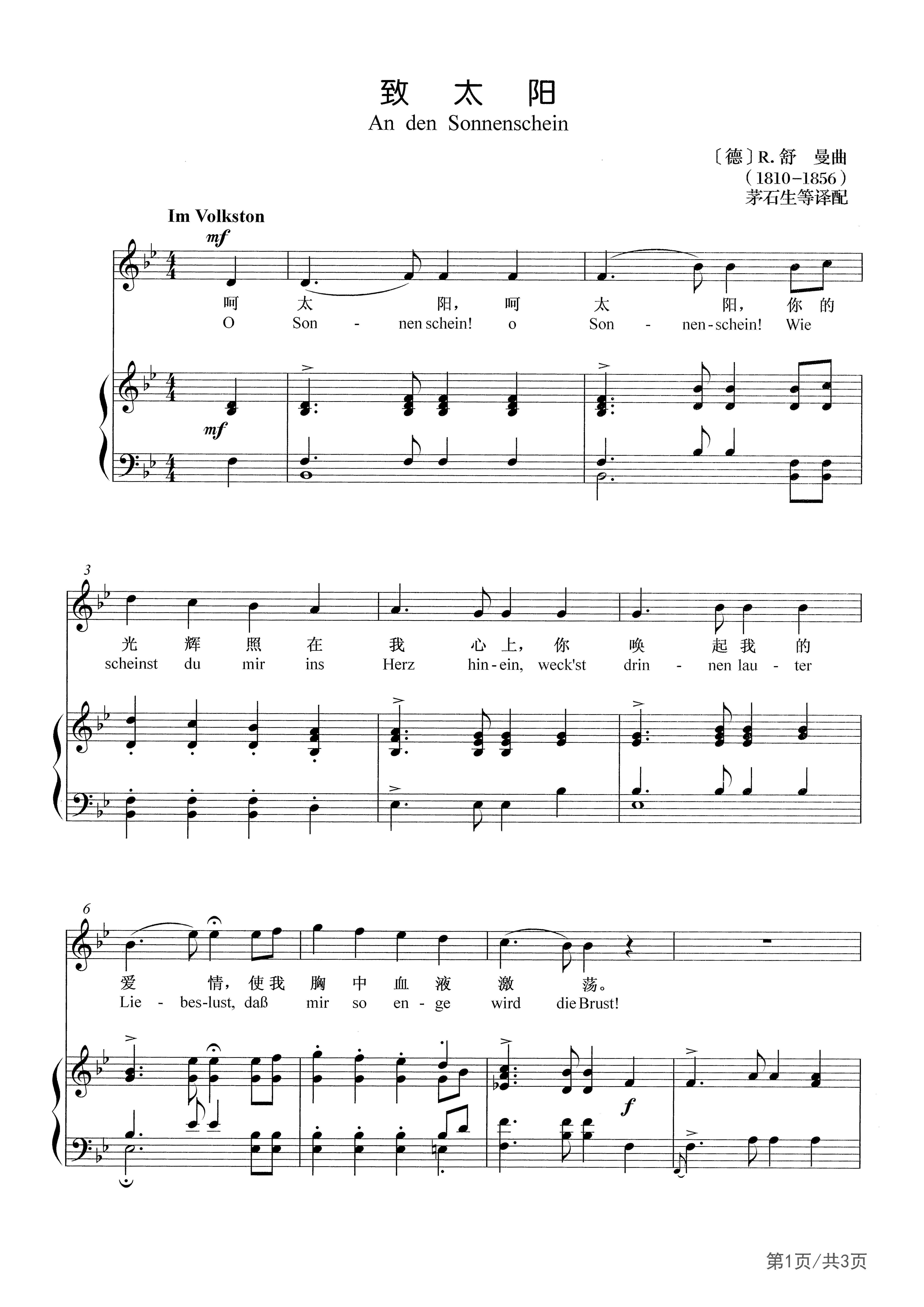 致太阳钢琴谱-声乐正谱-B调-外国声乐正谱