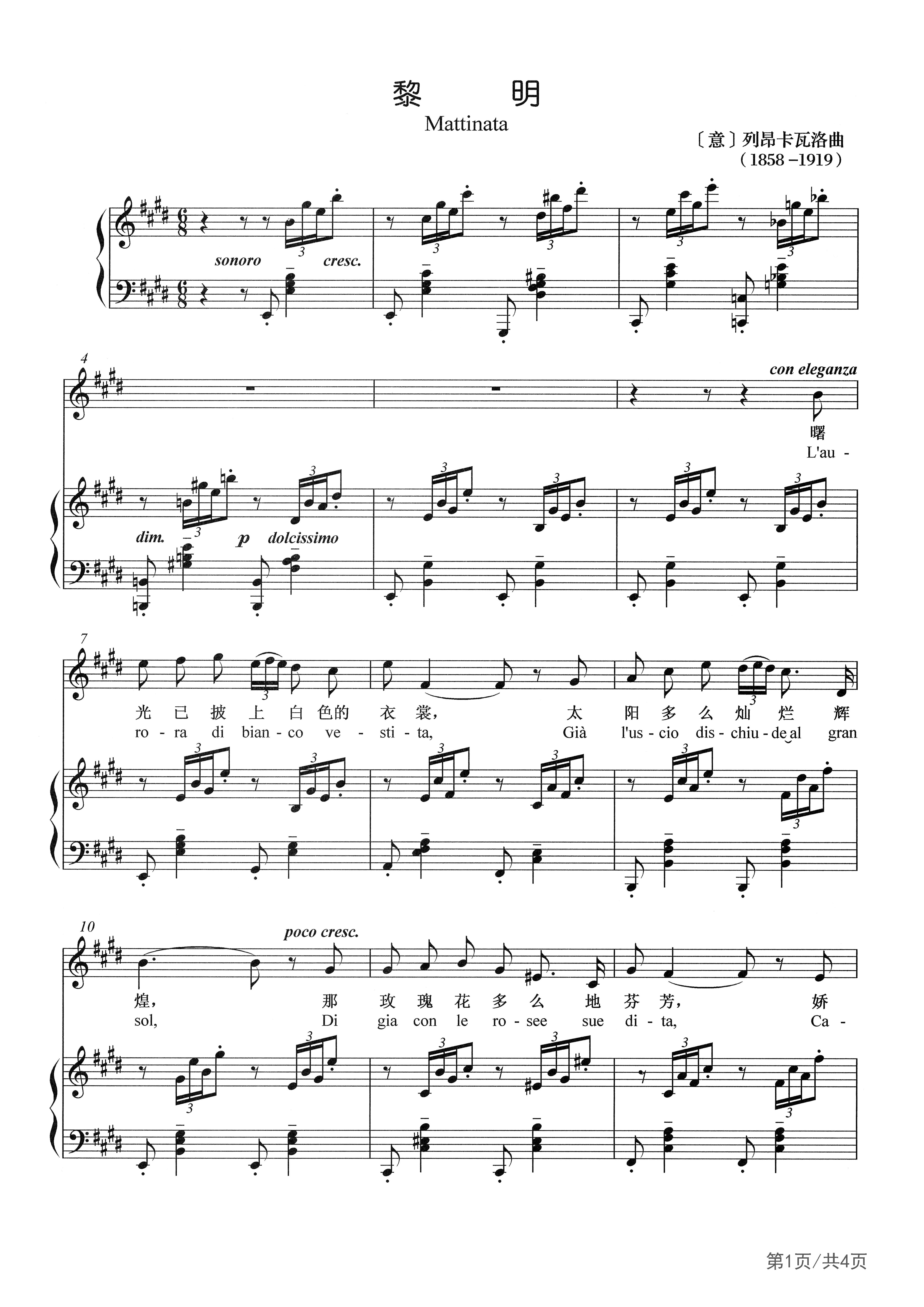 罗格里诺·列昂卡瓦洛(Ruggiero Leoncavallo,1848-1919),意大利作曲家。作品有《丑角》等。1890年受玛斯卡尼的歌剧《乡村骑士》影响,仅用了五个月写成了二幕歌剧《丑角》,在歌唱家弗拉丁帮助下,1892年由名指挥托斯卡尼尼在米兰上演,反映的热烈程度超过了前者。脚本由作者自写(他的其他歌剧也如此)。他的作品在戏剧结构和音乐方面都有创新,开幕前的致词是真实主义戏剧原则的宣言,戏中戏的构思也十分巧妙,悲剧的情节和严肃的思想性使传统喜剧形式有了更深刻的表现力,各种优美生动的民间歌曲形式的运用——如村民合唱、吉他伴奏的情歌等,亲切明快而富于魅力。他的主要作品还有《梅迪契家族》、等十几部歌剧。另外,他还写过很多首具有拿波里民谣形式的歌曲,如《黎明》。
