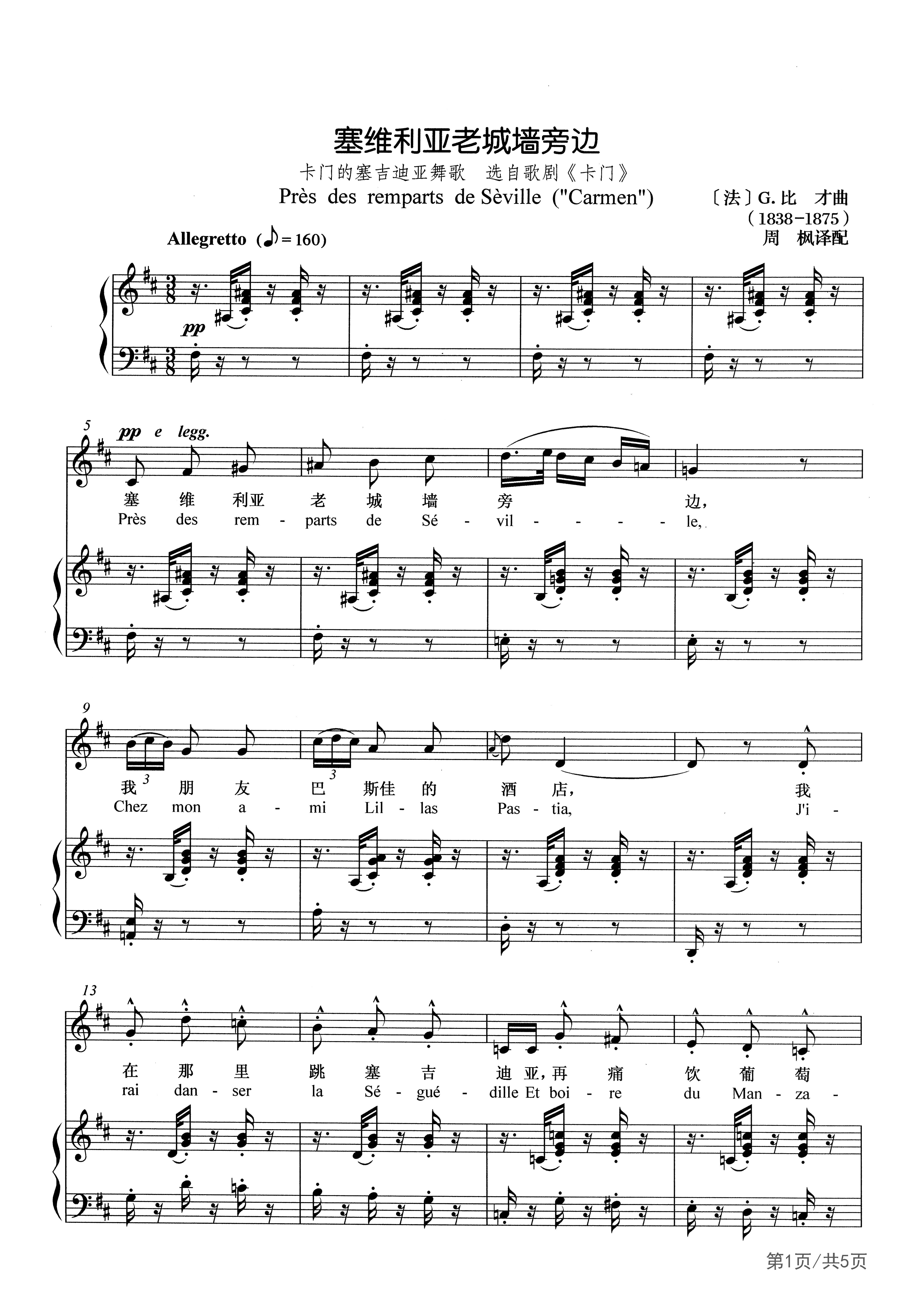 歌剧《卡门》是法国作曲家比才的最后一部歌剧,完成于1874秋。它是当今世界上上演率最高的一部歌剧。该剧主要塑造了一个相貌美丽而性格倔强的吉卜赛姑娘——烟厂女工卡门。她使军人班长唐·豪塞堕入情网,并舍弃了他在农村时的情人——温柔而善良的米卡爱拉。后来唐·豪塞因为放走了与女工们打架的她而被捕入狱,出狱后又加入了她所在的走私贩的行列。然而后来卡门又爱上了斗牛士埃斯卡米里奥,在人们为埃斯卡米里奥斗牛胜利而欢呼时,她却死在了唐·豪塞的匕首下。该剧以女工、农民出身的士兵和群众为主人公, 这一点,在那个时代的歌剧作品中是罕见的、可贵的。也许正因为作者的刻意创新,本剧在初演时并不为观众接受,但随着时间的推移,这部作品的艺术价值逐渐得到人们的认可,此后变得长盛不衰。这部歌剧以合唱见长,剧中各种体裁和风格的合唱共有十多部。