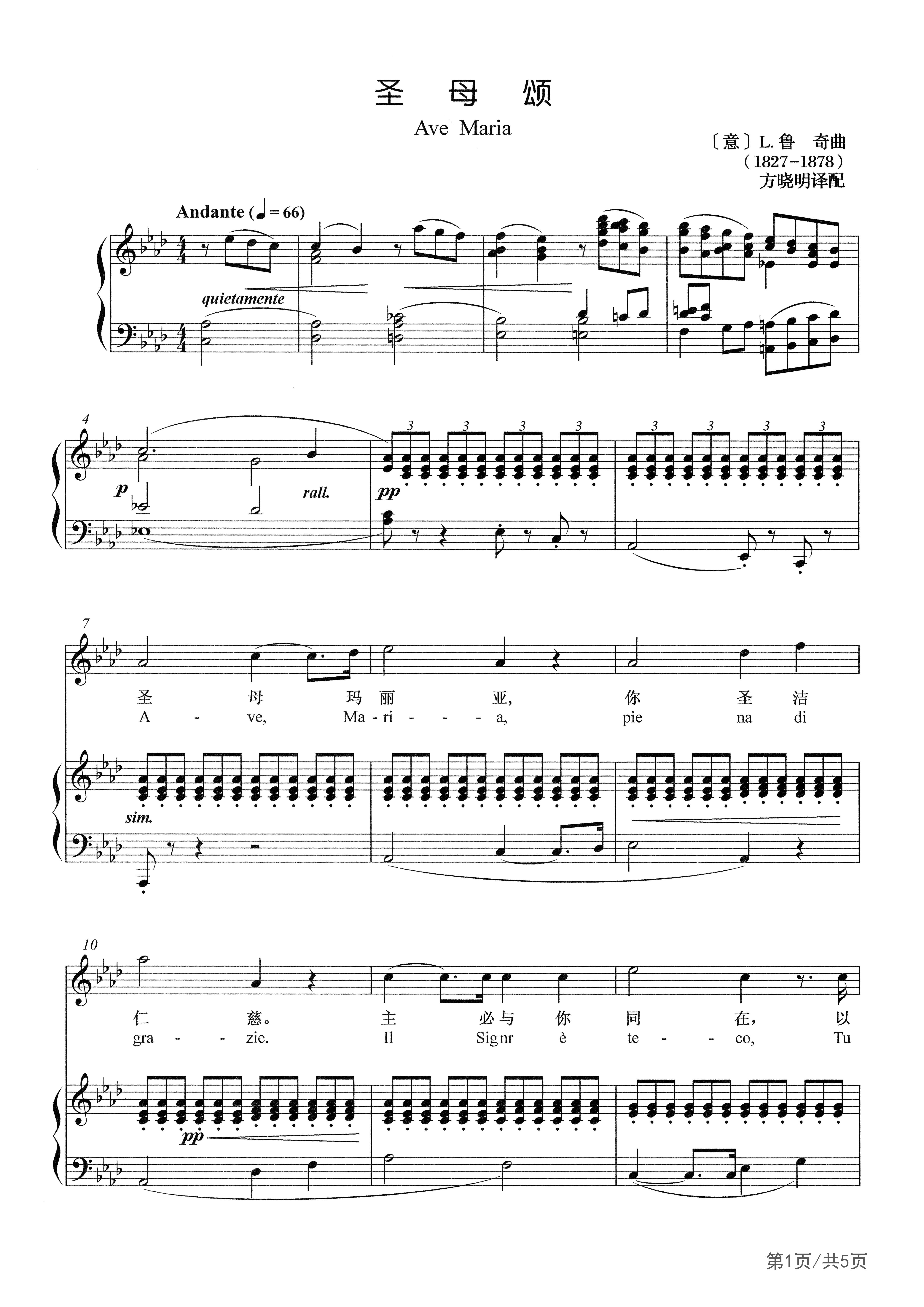 圣母颂钢琴谱-声乐正谱-A调-外国声乐正谱