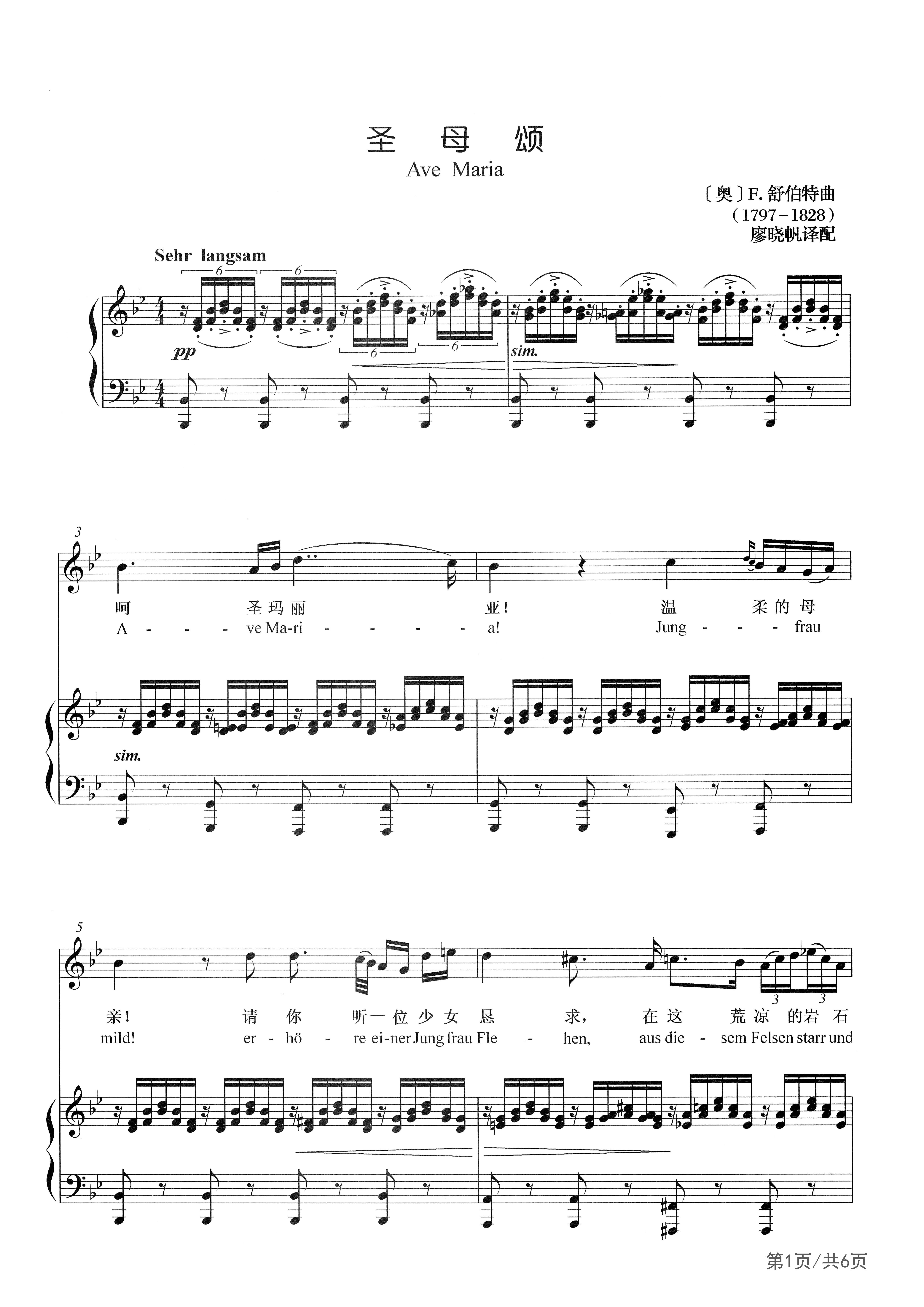 圣母颂钢琴谱-声乐正谱-B调-外国声乐正谱
