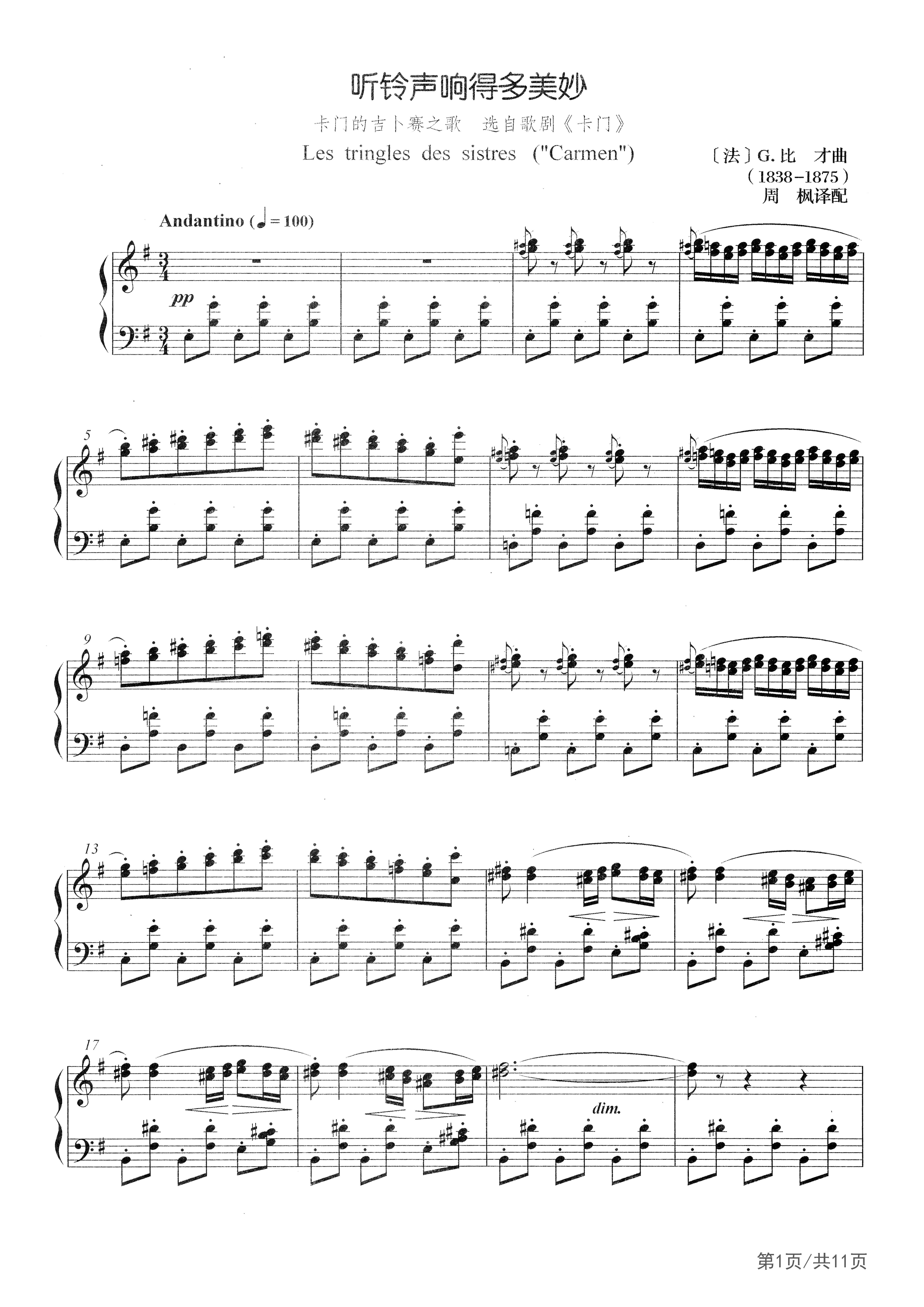 听铃声响得多美妙钢琴谱-声乐正谱-G调-外国声乐正谱
