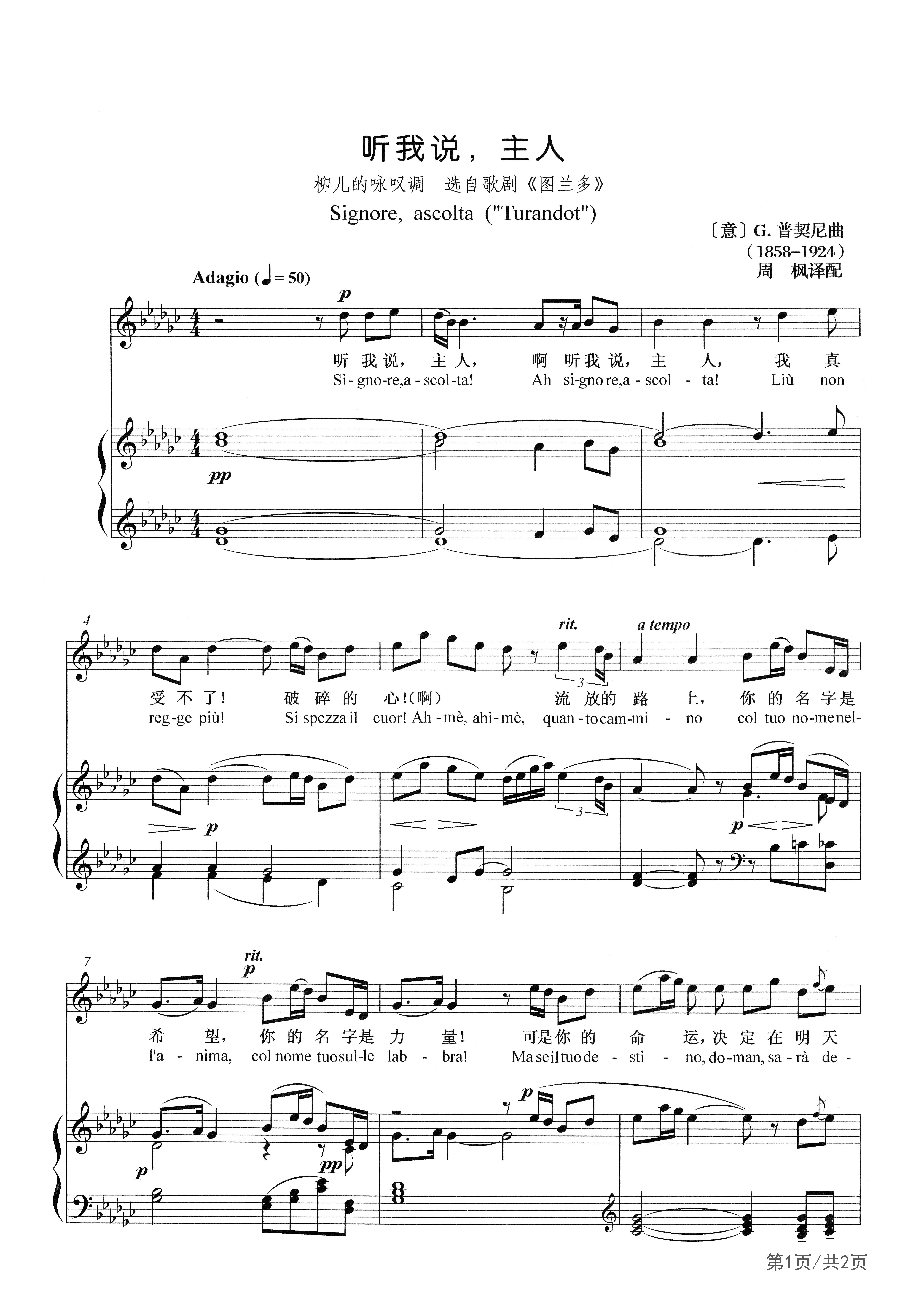 《Turandot(图兰朵)》是意大利著名作曲家贾科莫·普契尼根据童话剧改编的三幕歌剧,是普契尼最伟大的作品之一,也是他一生中最后一部作品。《图兰朵》为人民讲述了一个西方人想象中的中国传奇故事。该剧本最著名的改编版本是由普契尼(Giacomo Puccini)于1924年作曲的同名歌剧。普契尼在世时未能完成全剧的创作。在普契尼去世后,弗兰科·阿尔法诺(Franco Alfano)根据普契尼的草稿将全剧完成。该剧于1926年4月25日在米兰斯卡拉歌剧院(Teatro alla Scala)首演,由托斯卡尼尼(Arturo Toscanini)担任指挥。
