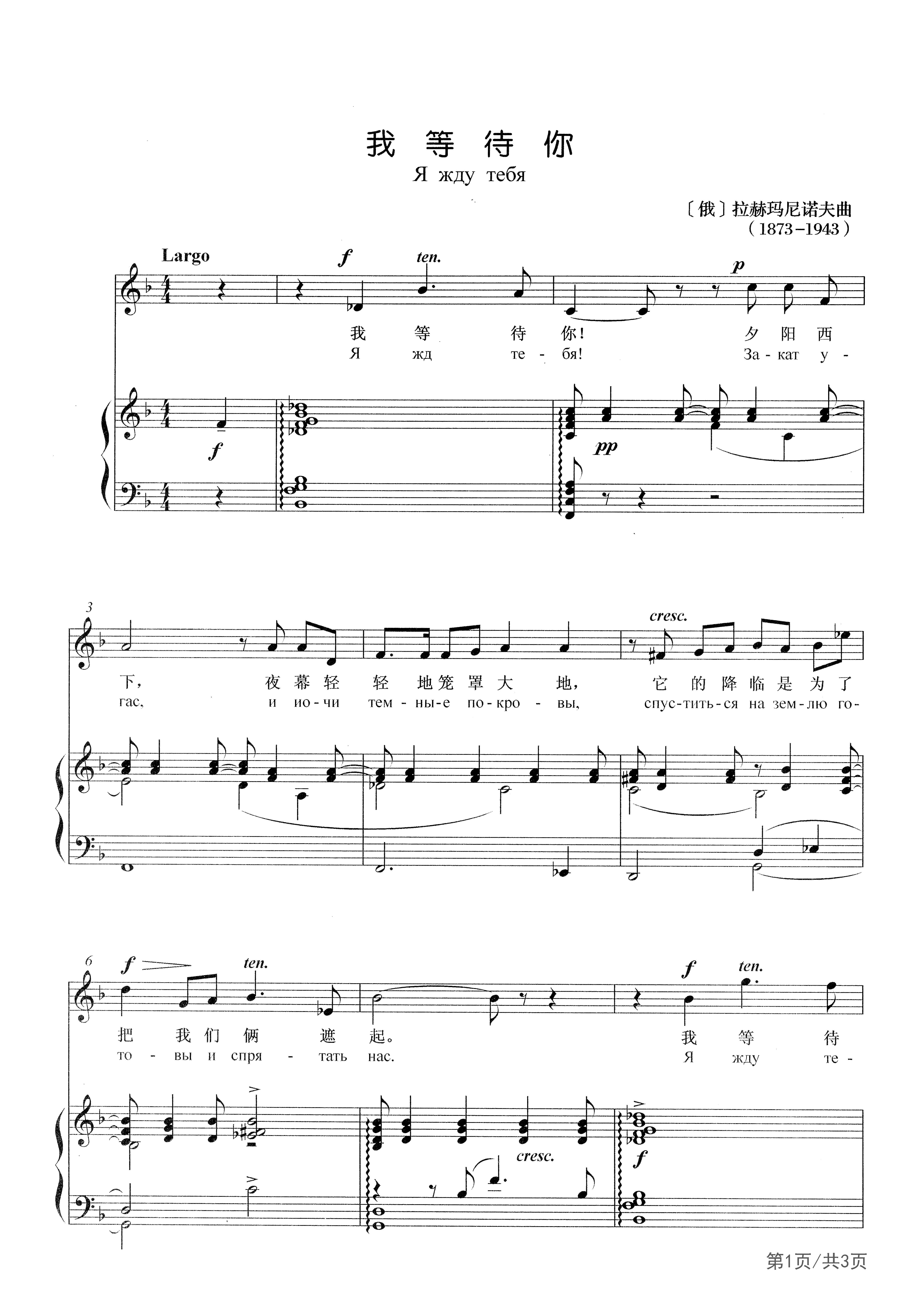 我等待你钢琴谱-声乐正谱-F调-外国声乐正谱