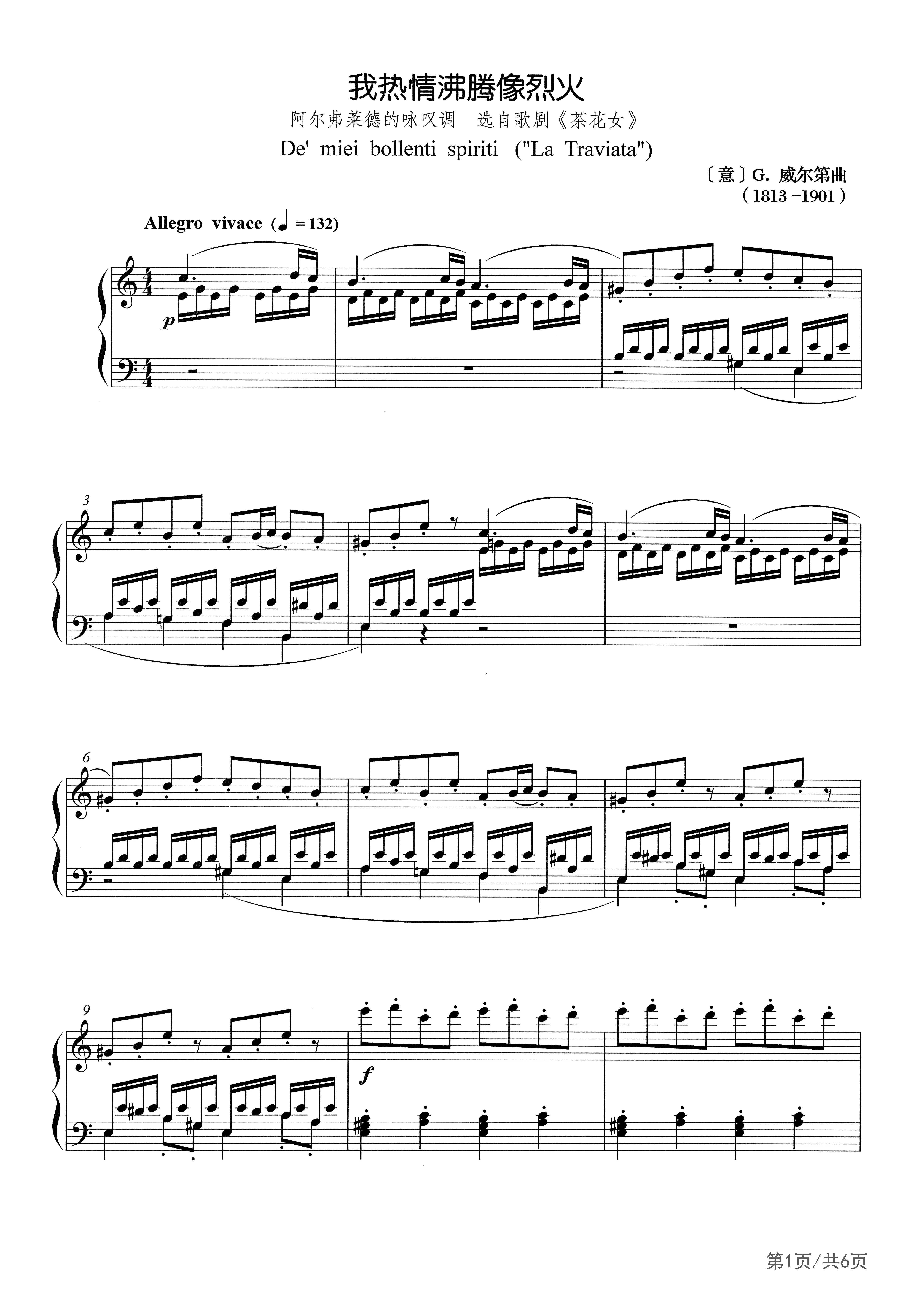 我热情沸腾像烈火钢琴谱-声乐正谱-C调-外国声乐正谱