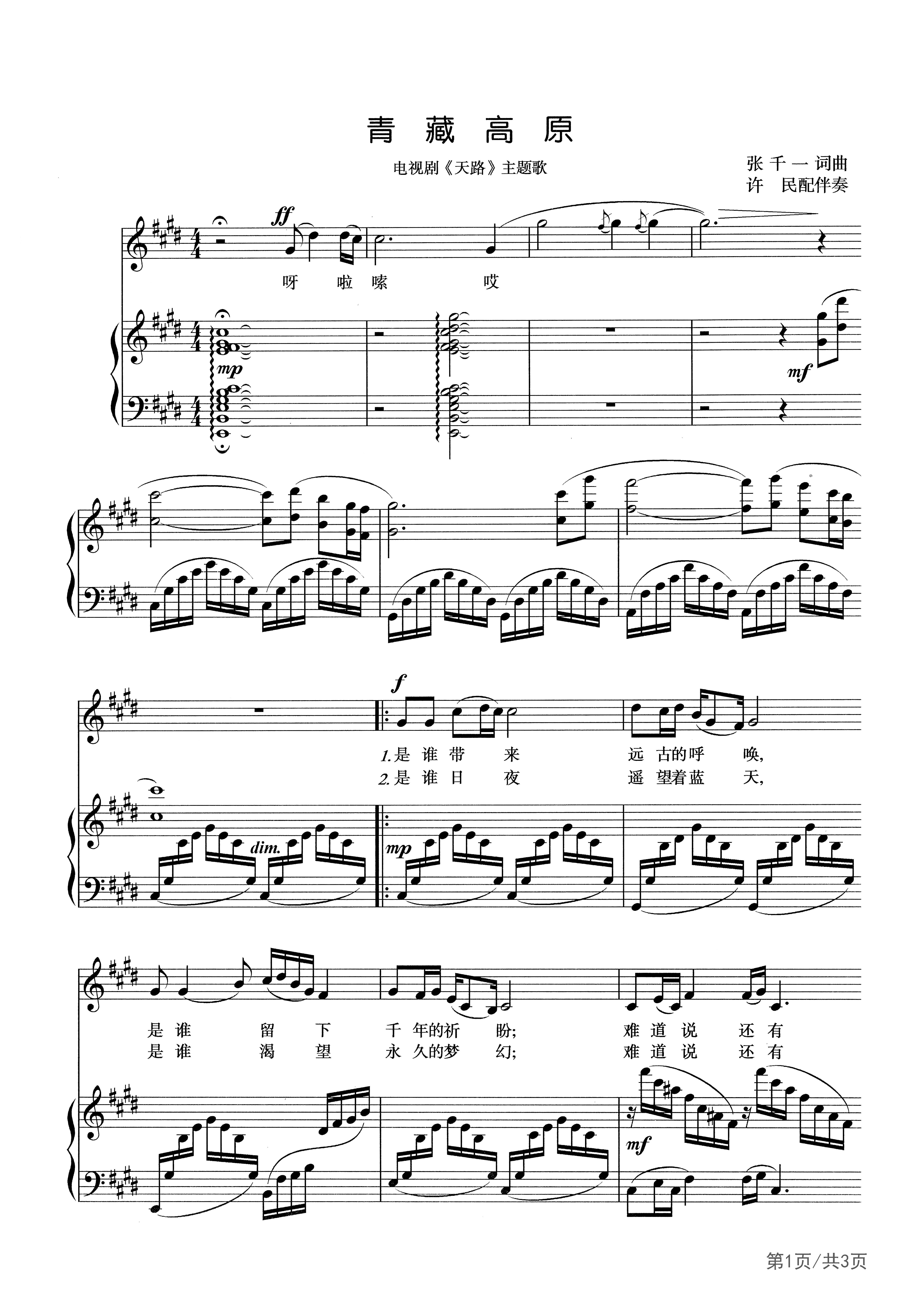 《青藏高原》是张千一作词、作曲,李娜演唱的歌曲,是1994年电视剧《天路》的片头曲,被李娜1998年发行的音乐专辑《青藏高原》收录。2001年5月20日,该曲获得首届中国音乐金钟奖声乐作品金奖 。2008年10月24日,张千一、李娜凭借该曲获得了由中国音乐家协会、中共深圳市委宣传部颁发的改革开放三十周年流行金曲勋章 。